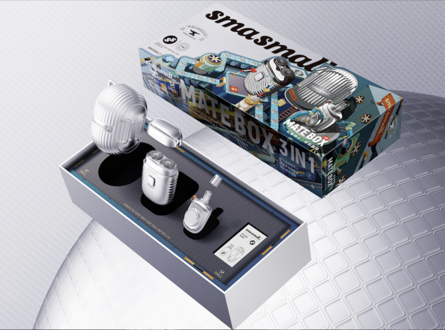 そこでおススメしたいのがSMASMALLジャパンから発売している、小型電動シェーバーとノーズトリマーがセットになった「MATE BOX 3in1」である。
