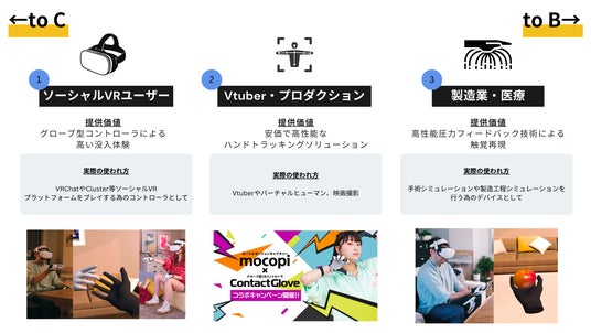 顧客セグメントは主にソーシャルVRユーザー(VRChat等)、Vtuber・プロダクション、製造業・医療の3種類に分類され、特定の顧客層に依存しない収益基盤を確立しています。