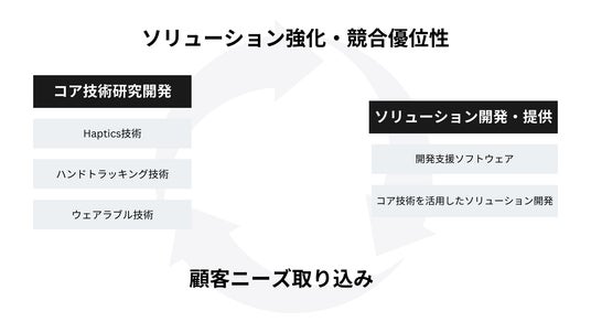 要素技術自体の研究開発も同時に進行し、Diver-Xとして提供できるソリューション・完成製品の幅(手数)も増やしていくことで、この好循環を複数同時にループさせることで成長を加速させます。