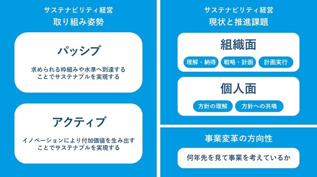 日本企業がサステナビリティ経営を推進するにあたっての重要な経営課題を明らかにするとともに、サステナビリティ戦略や施策決定へ役立てる