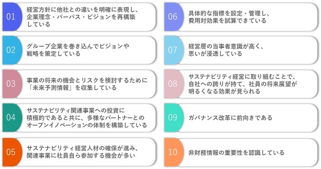 『サステナビリティ経営課題実態調査』結果から、サステナビリティ経営先進企業の特徴をまとめました。