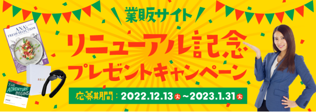 ネントリーズ株式会社(本社:東京都渋谷区、代表:津島 一夫)が運営する商用車専門オンラインプラットフォーム「トラック王国」では、業者販売専用サイトのリニューアルを記念してプレゼントキャンペーンを開催しています。応募期間は2022年12月13日~2023年1月31日まで。A賞ではANA’sフレッシュセレクション グルメ カタログギフト、B賞では整体師が監修したRELX リラクゼーション器、そのほかAmazonギフトカードが抽選で当たります。業者販売専用サイトへログインの上、ご応募ください。