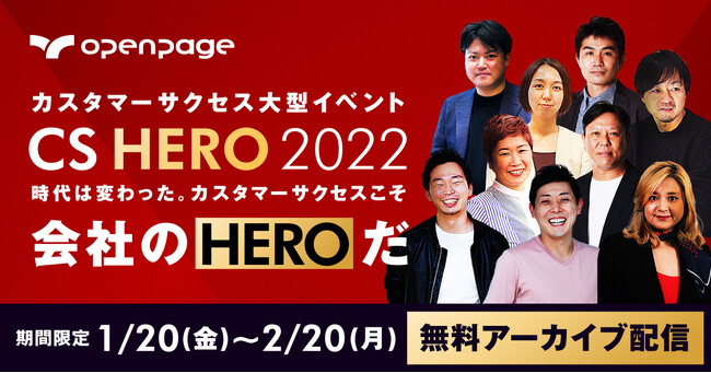 SaaS事業者向けカスタマーサクセスクラウド「openpage」を運営する株式会社openpage(本社:東京都新宿区、代表取締役:藤島誓也)は、2022年12月9日に開催したオンラインイベント『CS HERO 2022 時代は変わった。カスタマーサクセスこそ、会社のHEROだ。』を期間限定でアーカイブ配信いたします。合わせて、2022年4月20日に開催したオンラインイベント『CS PROUD 2022 SPRING カスタマーサクセスは、誇れる職業だ。』のアーカイブも同期間に配信いたします。