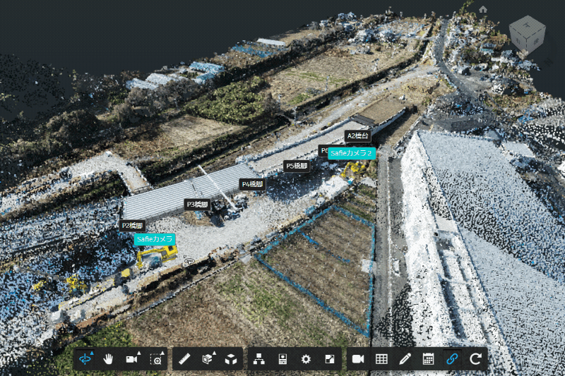セーフィーとコルクは、現場の全体像把握の精度確保や作業時間短縮による生産性向上に寄与するため、クラウド録画サービス「Safie」とBIM/CIM共有クラウド「KOLC+」をAPI連携し、BIM/CIMモデル、点群データ、リアルタイム映像をクラウド統合したデジタルツインによる遠隔臨場の実現を可能としました。