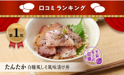 「極寒ブリ™」漬け丼の素は、脂のりの良い天然ブリを贅沢に使い、白糠の名産であるしそが香る「たんたか」と、醤油ベースの「りゅうきゅう」の2種類を2022年度ふるさと納税返礼品として販売しました。結果はどちらも好評だったため、2023年度の返礼品として本格的に商品化することが決定しました。寄せられたご意見を参考に更に味に磨きをかけ、極寒ブリ™が水揚げされる秋から生産をスタートします。