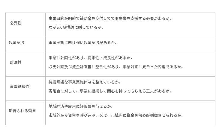 1. 「ながと6G構想」を踏まえた本市の事業に該当し、地域産業の振興に関する事業(新規事業・事業の多角化・拡大等)であること