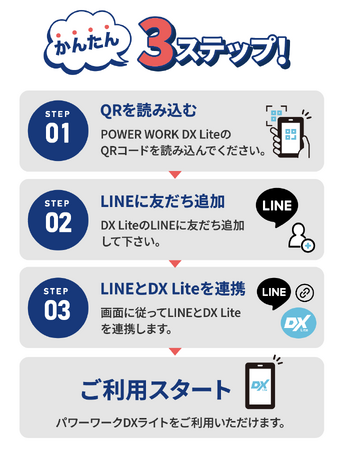 パワーワークDX Liteなら難しい申し込み手続きなど不要!LINE アカウントがあれば簡単にはじめることが可能!