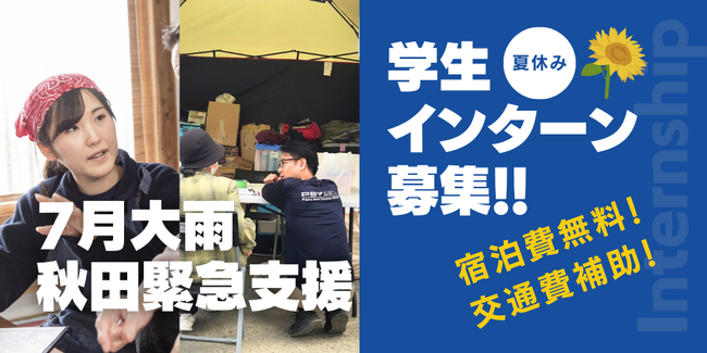 一般社団法人ピースボート災害支援センター(PBV)は、2023年7月14日から東北地方で降り続いた大雨により3,000棟を超える住宅が浸水被害を受けた秋田県にて、支援活動をおこなっています。被災された皆様の生活再建までには多くの時間がかかります。支える場を作りあげていく仲間(学生インターン)を募集しています。