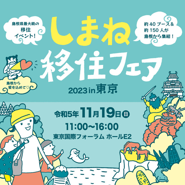 公益財団法人ふるさと島根定住財団(以下、財団)は、移住検討者への情報提供や相談対応を行う対面型のイベント「しまね移住フェア2023 in 東京」を、2023年11月19日(日)11:00~16:00に、東京国際フォーラムホールE2にて開催します。