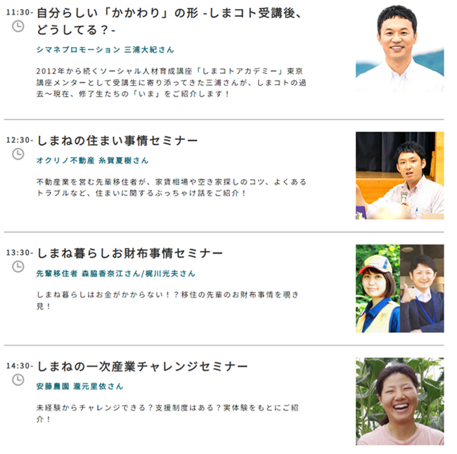 まずは情報収集を…とお考えの方はこちらがオススメ!ゲストが講師となり、しまね暮らしのアレコレをお話していきます。事前予約不要ですので、気になるセミナーを覗いてみましょう♪。