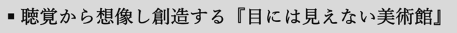 各館長が考える独自の観点から自分たちが作りたいオリジナルの”目には見えない美術館”を開館。普段日本の美術館ではなかなか大きな声で話すことができませんが、ここではむしろ話のみで作品を想像し創造していく、そんな新たなアート体験が始まります。