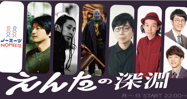 また現在配信中のエンタメ再解釈帯番組「えんたの深淵」では新たにスーパー・ササダンゴ・マシン、上田慎一郎、コマンダンテの3組を新パーソナリティーに迎え、総勢7組のMC陣がリスナーをさらなるエンタメの深淵へと導きます。