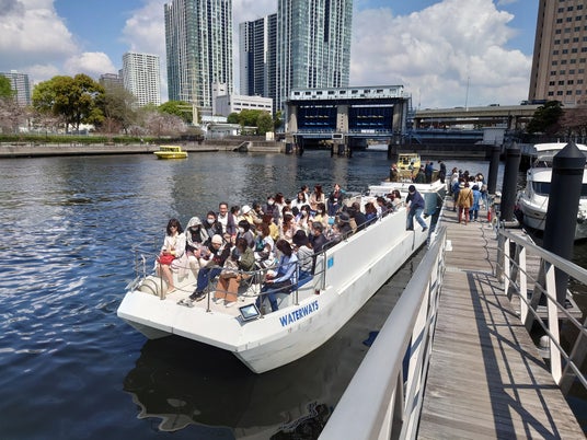 「散り際でしたがとても綺麗でした。船の上は風が気持ち良く、飛んでくる桜吹雪に娘は喜んでいました。毎年成長する桜をまた見に来て下さいというアナウンスの方がとても上手で印象的でした。次回は満開の時に行ってみたいです。」(2022/4/8)関東からお越しの東京近郊はもちろん、日本全国から、そして世界中からのお客様まで、ご利用いただく年代・目的はさまざま。十人十色の視点でクルージングをご満喫いただいております。東京ウォータウェイズ:口コミサイト