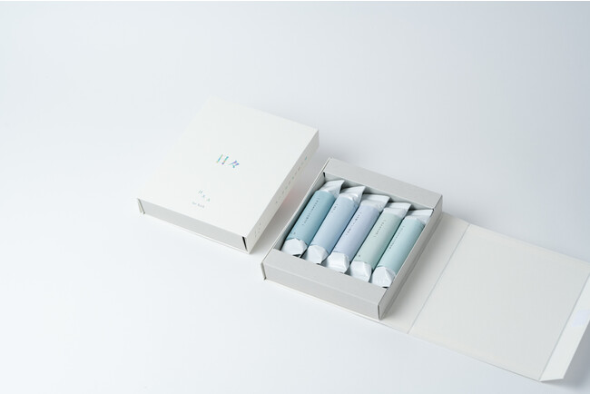 贈る気持ちを代弁する3つのテーマに合わせた「ことばに包まれた入浴剤」5個入りのギフトボックスです。入浴剤は全て同じHAA for bath(無香料)で、包み紙に書いてある言葉が全て異なっています。ギフトで受け取った方がそっと本棚から取り出せるようなデザインで、それぞれのテーマに合わせたパッケージでご用意いたしました。