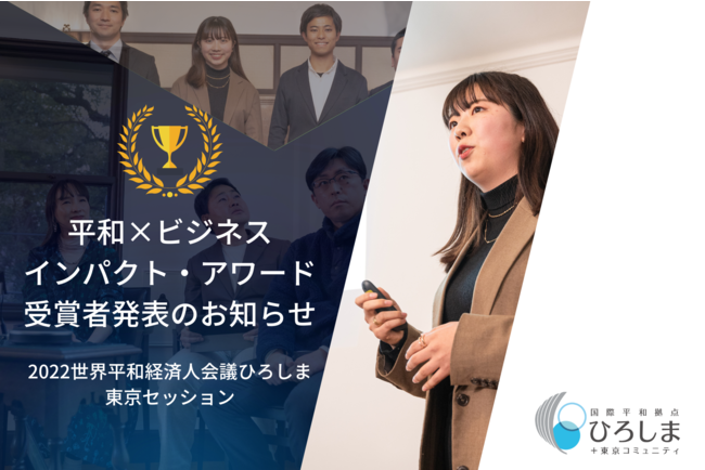 「平和×ビジネス・インパクト・アワード2022」は、「平和×ビジネスの価値創造」をキャッチコピーに、平和起点のアイデアを持つシードステージのU40ライジング・スター(「平和×ビジネス」を実践・体現しようとする未来のチェンジメーカー)を発掘することを目的に開催するアワードで、本年が第1回目となります。今回は企画パートナーのネットワークを通じた全国からのセミクローズド募集によるエントリーから、全2部門の受賞者を3名の審査員投票で決定しました。