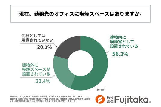 株式会社Fujitaka(本社:京都府京都市 、代表取締役:高井 茂行)が提供する「SMOKE POINT」は、東京・大阪・名古屋・横浜のいずれかを所在地とし、従業員数100名以上が在籍する企業のオフィス管理担当者を対象に「オフィスの喫煙スペース」に関する実態調査を実施しました。この調査結果から、三大都市圏および横浜のオフィスにおける喫煙スペースの実態などが明らかになりました。