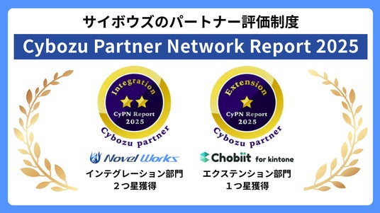 株式会社ノベルワークス(本社:大阪府大阪市北区、代表:満村 聡)は、サイボウズ株式会社(本社:東京都中央区、代表取締役社長:青野 慶久)のオフィシャルパートナー評価制度「Cybozu Partner Network Report 2025(以下、CyPN Report)」において、インテグレーション部門で2つ星、エクステンション部門で1つ星の評価を獲得しました。