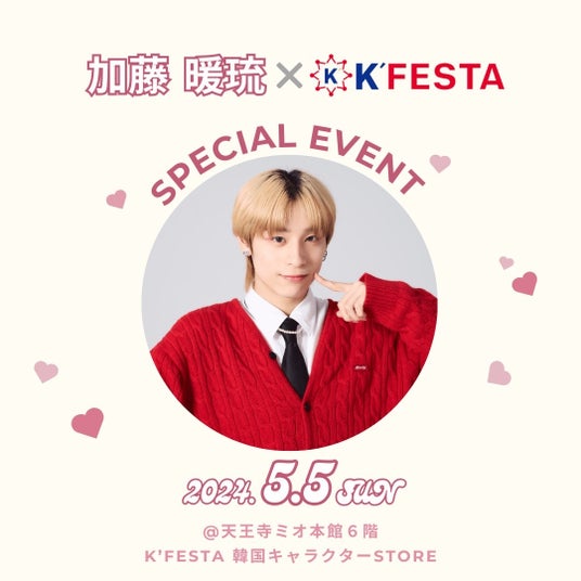 ボイプラ出身"加藤暖琉"さん来店イベントが5月5日(日)天王寺ミオ「K'FESTA韓国キャラクターSTORE」にて開催