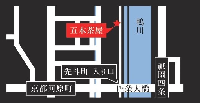 〒604-8014京都府京都市中京区柏屋町169−3四条通りから先斗町に入って直ぐ・京阪祇園四条駅から徒歩2分・阪急河原町駅1A出入り口から徒歩2分・地下鉄三条京阪駅から徒歩15分・営業時間10時半~18時閉店(17時LO)※変更の際は公式Instagramにてお知らせいたします。・席数カウンター8席【五木茶屋公式HP】