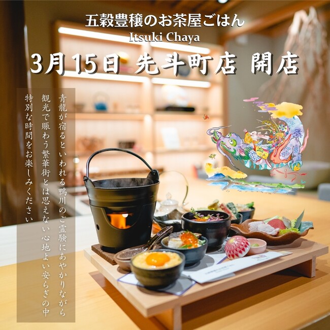 3月15日に京都の五木茶屋 五穀豊穣のお茶屋ごはん(R)が、3店舗目となる先斗町店をオープンします。