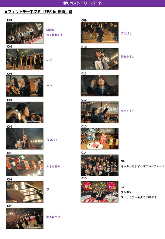 15周年を記念して、前回に引き続きダンスボーカルパフォーマンスユニット「新しい学校のリーダーズ」を起用し、新潟県柏崎市の高校生とともにフェットチーネグミ書き下ろし楽曲「OneHeart」をサプライズ演奏した新CM「FES in 柏崎」篇を12月1日(月)より公開いたします。