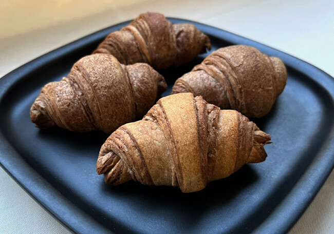 お子さまからお年寄りまで食べやすいようミニサイズにしたところ、クロワッサンへの火の通りが良くなり、サクサクとした食感がアップしました。すこし小腹が空いた時、おやつの時間などに罪悪感を持たずに食べられるクロワッサンです。