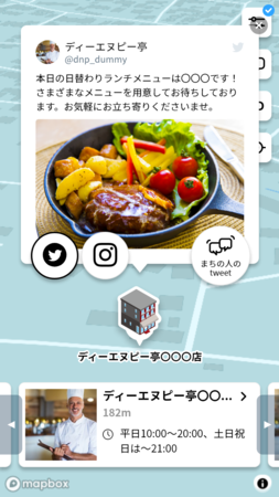 DNP MAPベース地域振興情報発信プラットフォームは、地域の魅力を視覚的に伝え、まちの「今」のホットなスポットの情報をよりリアルタイムに発信できる「地域の魅力に出会うためのメディア」です。