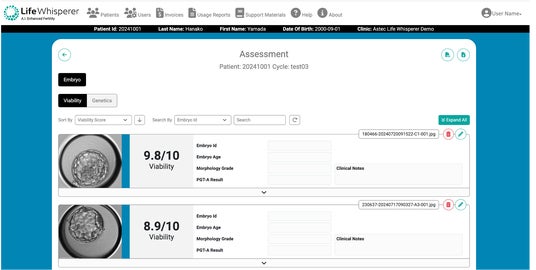 Life Whispererの生存性と遺伝学のAIベースの胚とLife Whisperer の卵母細胞評価ツールは、体外受精の全過程を網羅する一連のアプリケーションの中で初めて商品化されました。