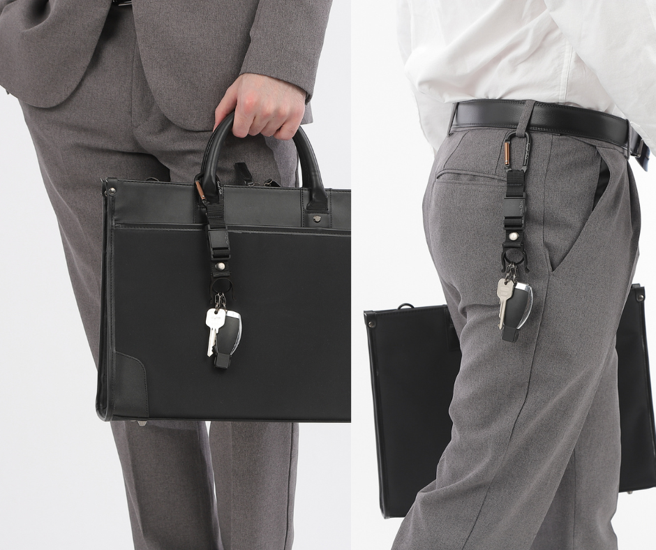 バッグやベルトループに装着するだけで、身軽で快適な移動をサポートします。