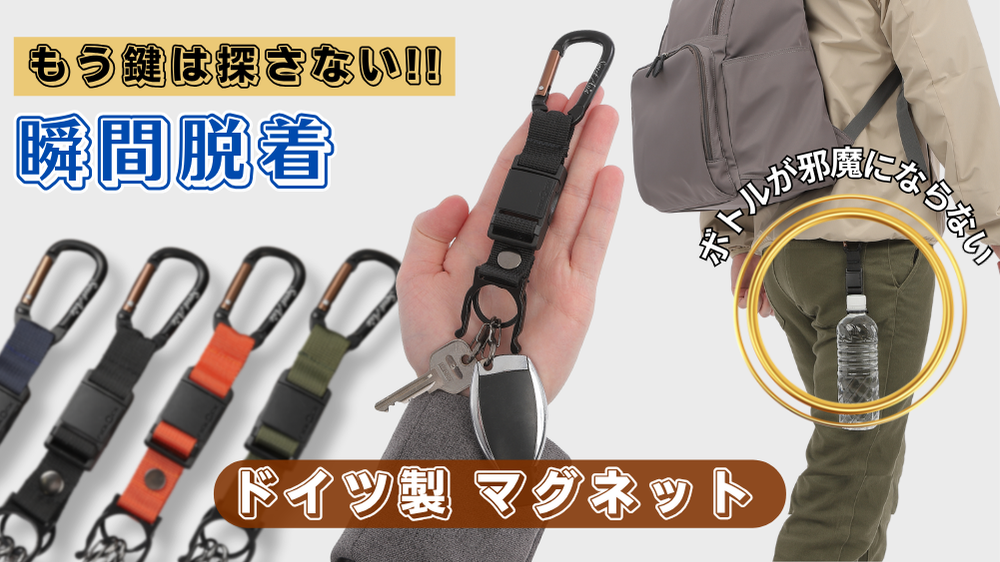 2WAY仕様で使い方自由!ペットボトルホルダーにも、キーホルダーにもなるマグネット式が新登場!!