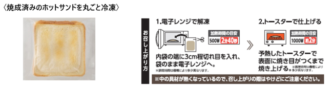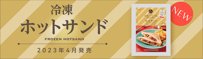 ■表題「業界初!冷凍食品の主食ブームに。具材を挟んで焼き上げた『冷凍ホットサンド』2023年4月発売!」