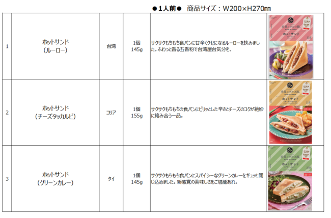 カラミノフーズは創業30年、「パスポートのいらない世界のグルメ旅(R)」を食卓にお届けして参りました。昨今の冷凍食品の伸長、そして主食(ご飯・パン・麺)の需要の高まりを受けて、世界の料理を具材にした『冷凍ホットサンド』を開発しました。“ありそうでなかった”新しい冷凍パンの誕生です。