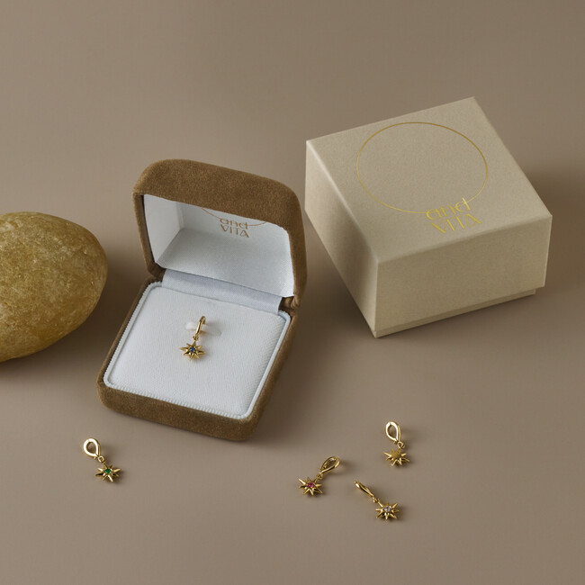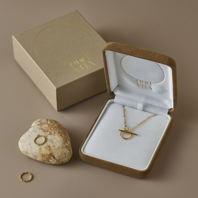3種類のデザインから選べるベビーリング、2種類の素材と3つの長さから選べるチェーン、そして2種類のバータイプと誕生石入り星型のチャームをご用意。ジェンダーレスなデザインのジュエリーのため、パートナーとお揃いで身につけていただくこともできます。(https://andvita.com/collections/maternityjewelry)