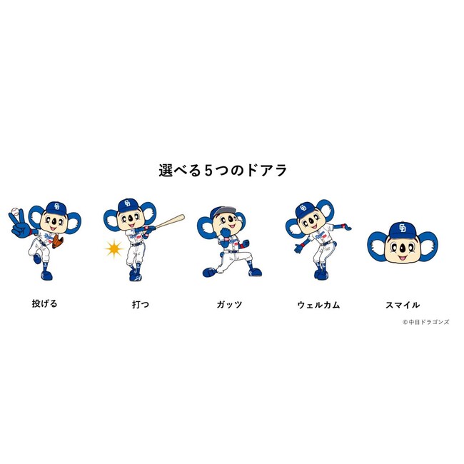 ・ホールケーキ中央に添えられるドアラの種類(板チョコ)は全5種類の中から一つを選びます。(投げる・打つ・ガッツポーズ・ウェルカム・スマイル)