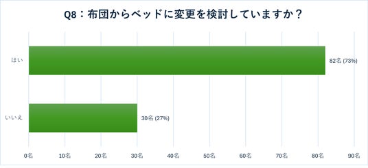 「Q8.布団使用中の方へ 布団からベッドに変更を検討していますか?」との質問に対し、結果は次のようになりました。