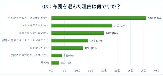 「Q2-2. “布団”と答えた方へ 布団を選んだ理由は何ですか?(最もあてはまるものをお選びください。)」との質問に対し、結果は次のようになりました。