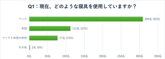 「Q1.現在、どのような寝具を使用していますか?」の質問に対し、結果は次のようになりました。」の質問に対し、結果は次のとおりとなりました。