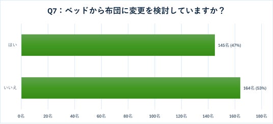 「Q7.ベッド使用中の方へ ベッドから布団に変更を検討していますか?」との質問に対し、結果は次のようになりました。