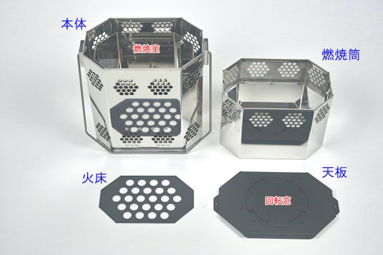 『ハンゴーストーブ・炭ロボ』は、4つのパーツで構成されます。