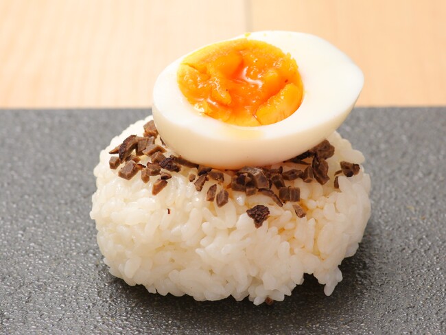 細かく刻んだトリュフの芳醇な香りをたまごとご飯がそっと包みこみます。