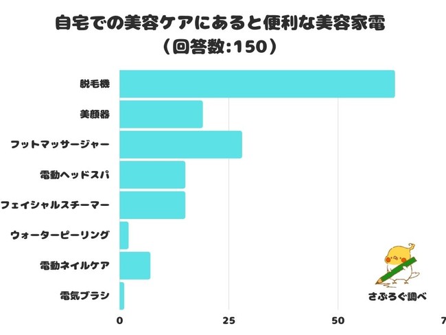 自宅での美容ケアにあると便利な美容家電をアンケートにて調査したところ、1位は「脱毛機」でした
