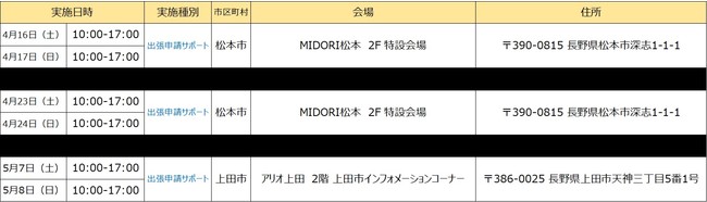 ※開催場所の調整状況や新型コロナウィルスの感染状況等により、「出張申請受付」及び「出張申請サポート」の開催を中止・延期、または実施内容が変更となる可能性がございます。