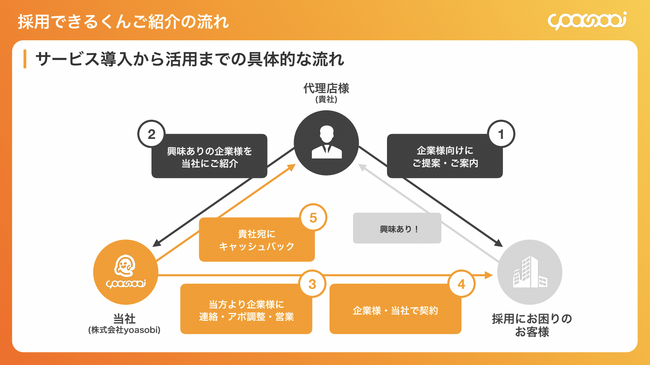 販売パートナーとしてのアクションは、「採用に困っている中小企業を紹介する」だけです。
