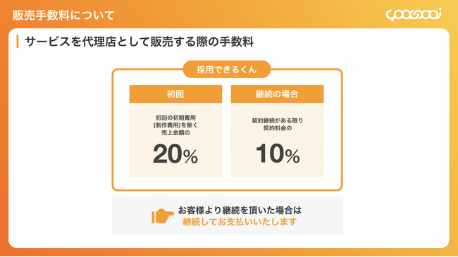 中小企業の経営者の方は、採用に関して少なからず課題をお持ちであることが多く、販売パートナーとしてはその悩みを解決できることで、「信頼関係を増すことができた」「お客様の人材に関するお悩みをより具体的にアドバイスできるようになった」「また新規顧客に対しては、本業以外の採用の側面からコンタクトをとることができるようになった」などのお声をいただいております。