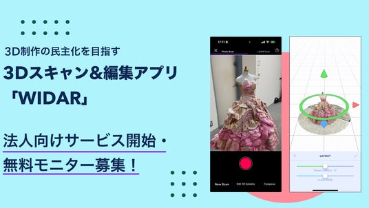 株式会社WOGO (以下WOGO)が運営する全世界で100万ユーザー超えの3Dスキャン&編集アプリ『WIDAR』が法人様向けプランを2024年4月にリリース致します。ゲームエンジンを基盤とした柔軟なスキャン機能・編集機能の拡張性を基に、エンタメ、建設、製造業等の様々な業界に特化してカスタマイズして利用できるようになります。この度は、サービス向上のために5社限定で無料モニター様を募集しております。このモニター企画では、法人向けWIDARの試験導入が期間限定・無償で可能となります。