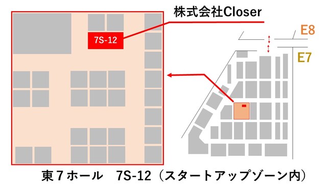 株式会社Closerのブース位置については、以下の図を参考にしてください。
