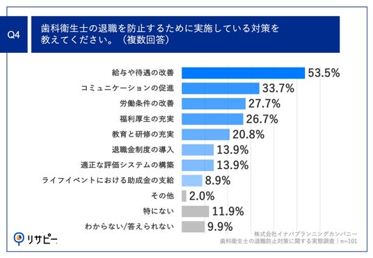 Q4.歯科衛生士の退職を防止するために実施している対策を教えてください。