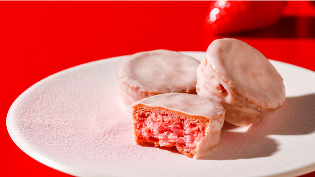 あまおう苺パウダーをブレンドして焼き上げられたザクザクの厚焼きクッキーを、ほんのりピンクのチョコレートで包み込みました。