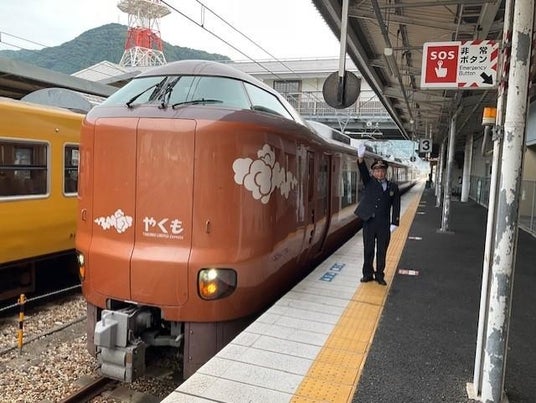 話題の新車両の出発合図!この春デビューした新型・特急やくも、森の芸術祭開催期間限定の運行「○○のはなし~岡山編~」、「ラ・マルやまなみ」などの話題の列車の出発合図ができます。(出発日によって体験可能な列車が異なります)