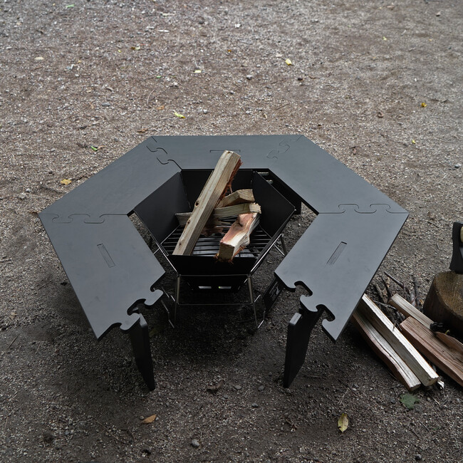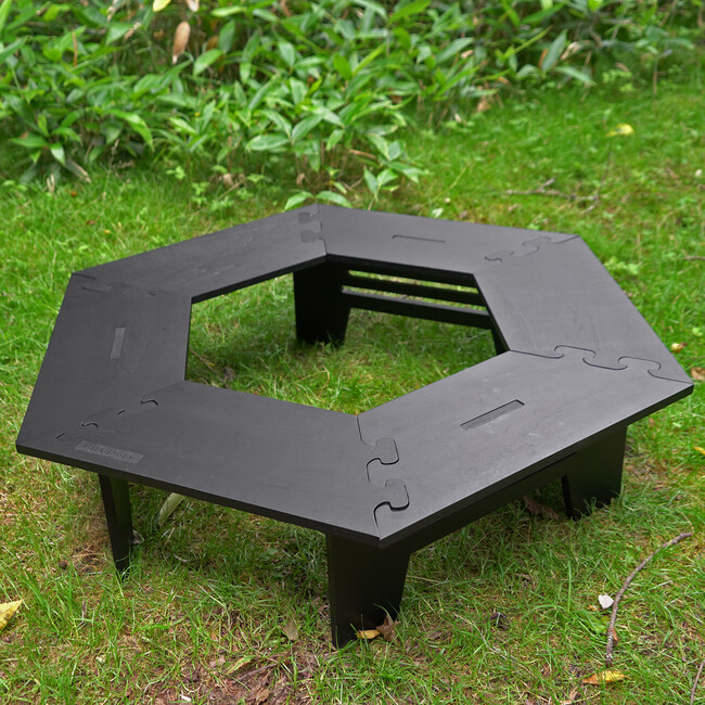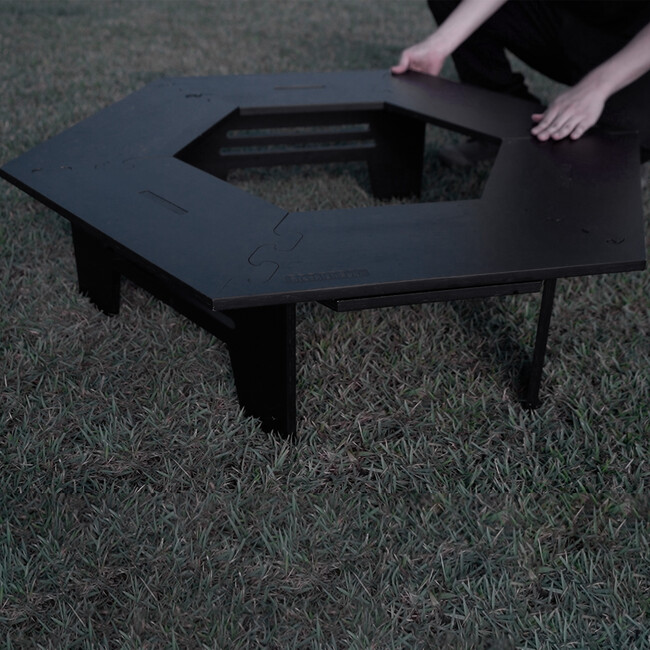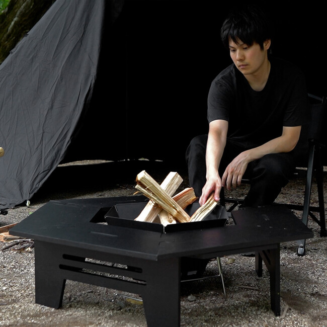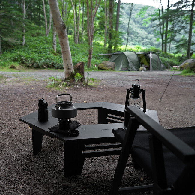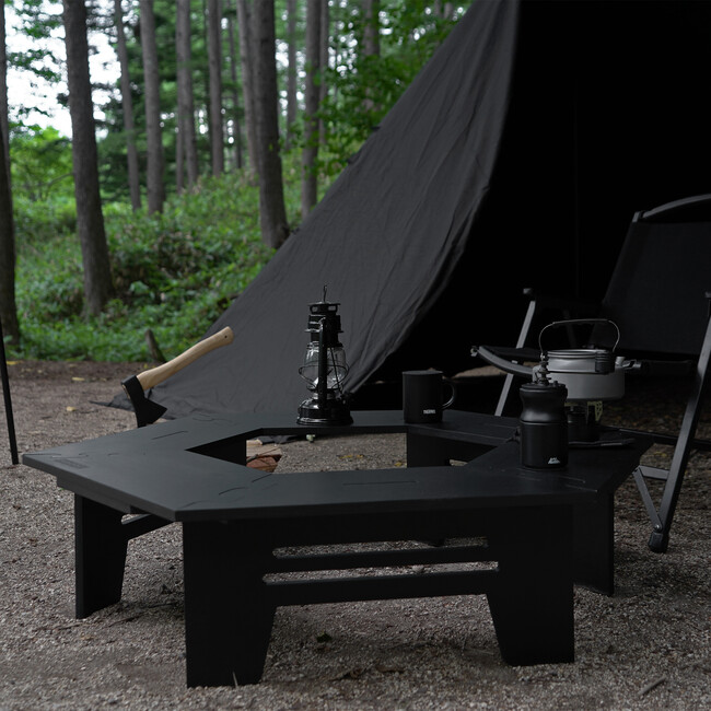 キャンプサイトが引き締まるブラックヘキサテーブル